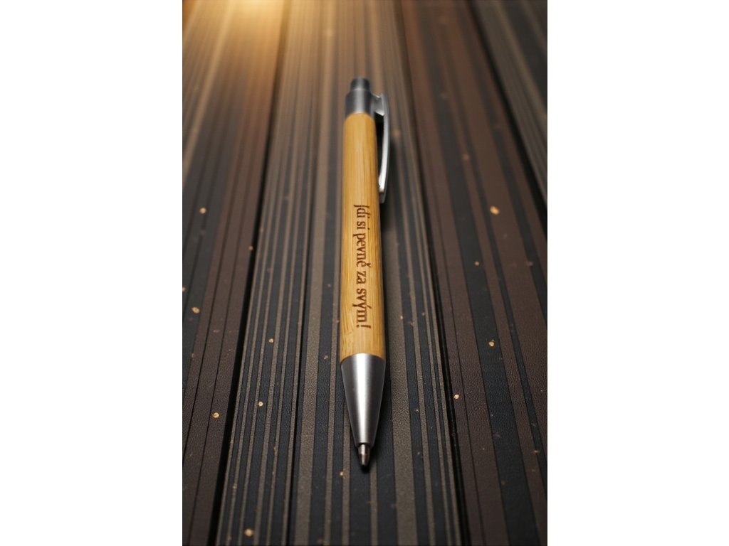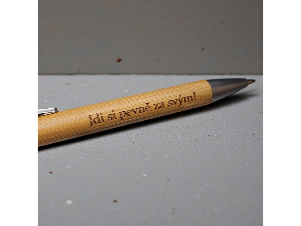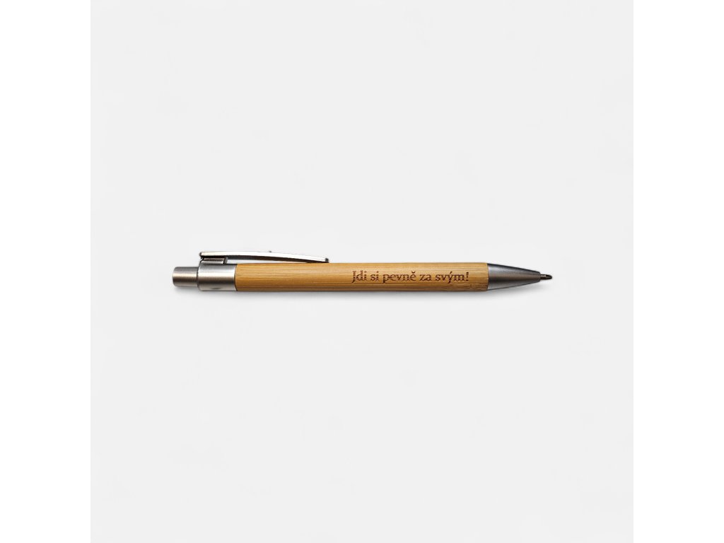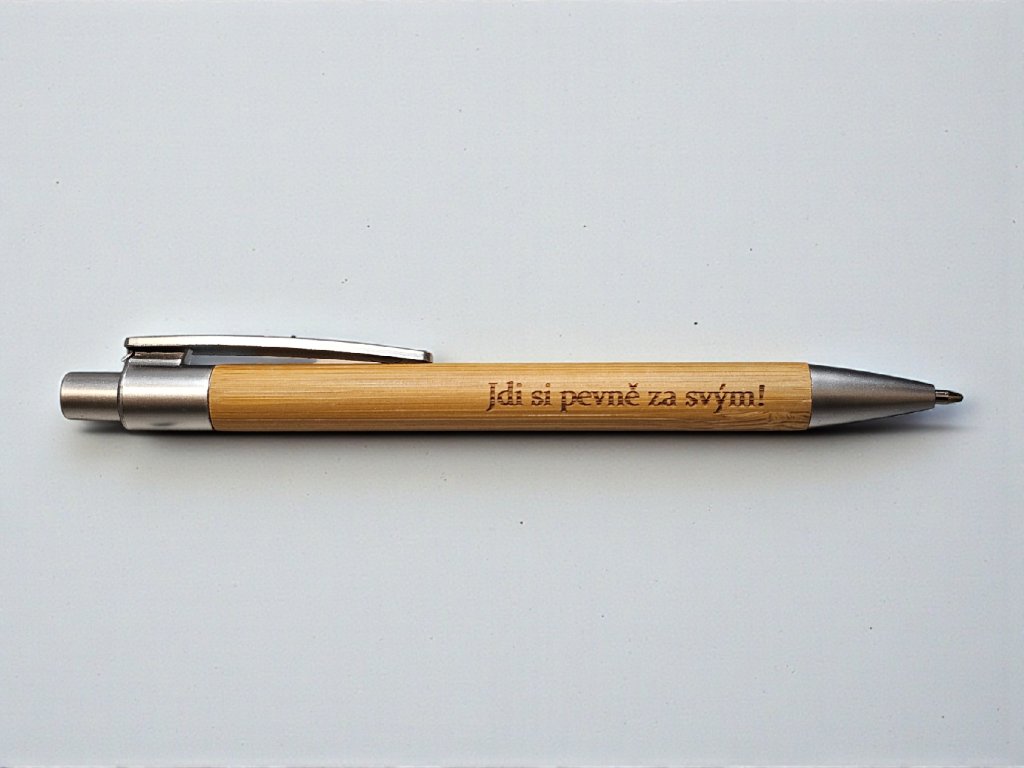 Bambusová propiska s laserovým gravírováním jména nebo krátkého textu. Přírodní, lehká a praktická volba pro každodenní psaní i jako osobní dárek.