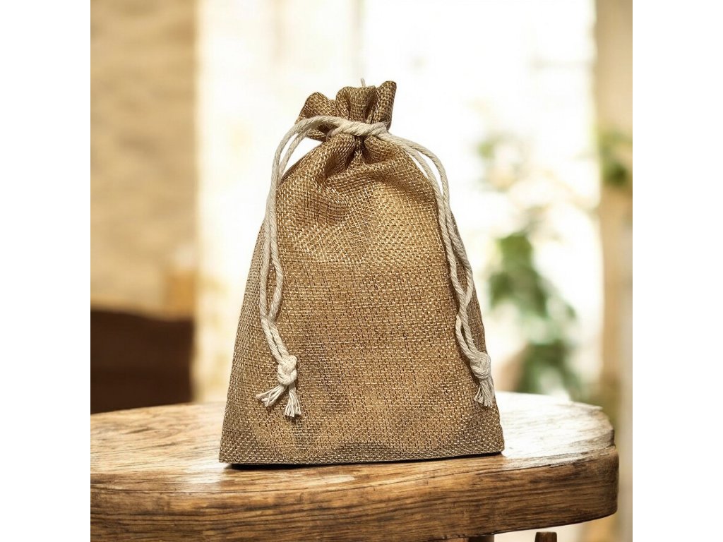 Elegantní pytlík v imitaci juty o rozměrech 12,5 x 17,5 cm. Ideální na dárky, sušené květy či šperky v přírodním stylu. Snadné uzavírání šňůrkou.