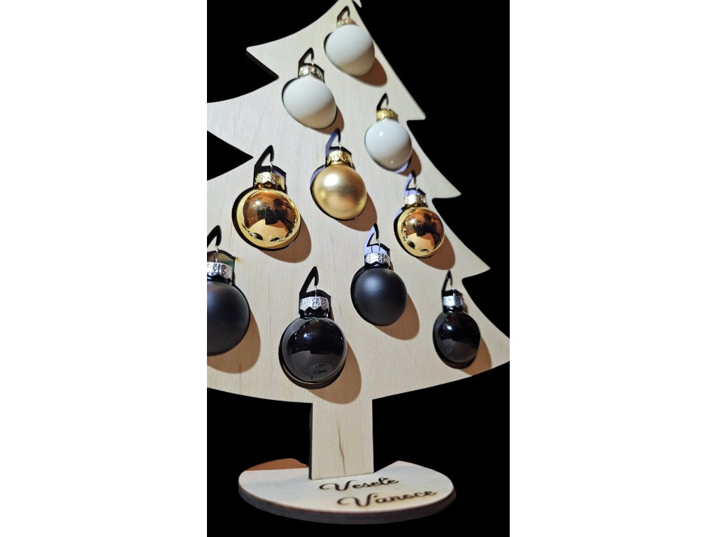 Součást balení: dřevěný stromek + 10 skleněných ozdob