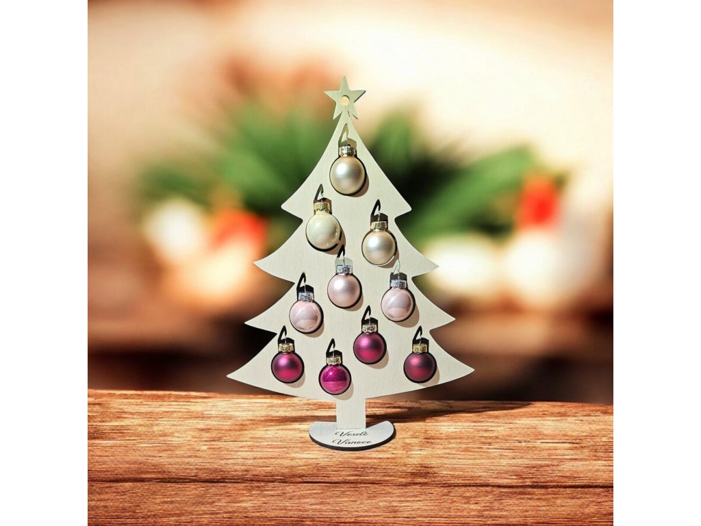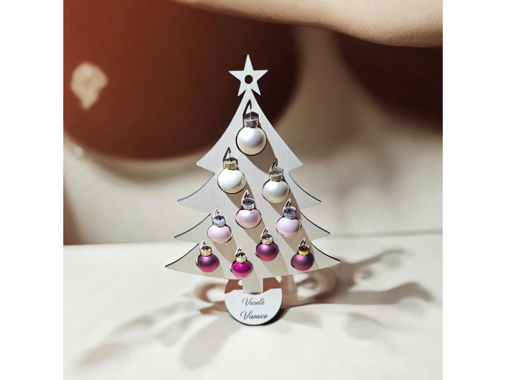 Součást balení: dřevěný stromek + 10 skleněných ozdob