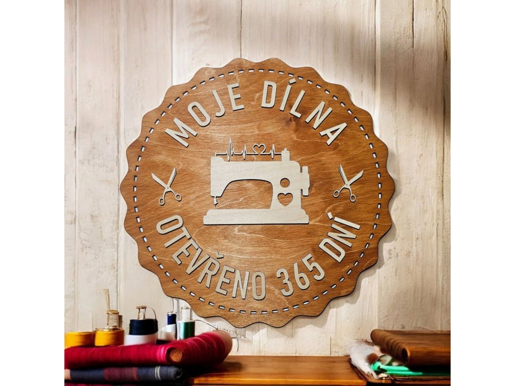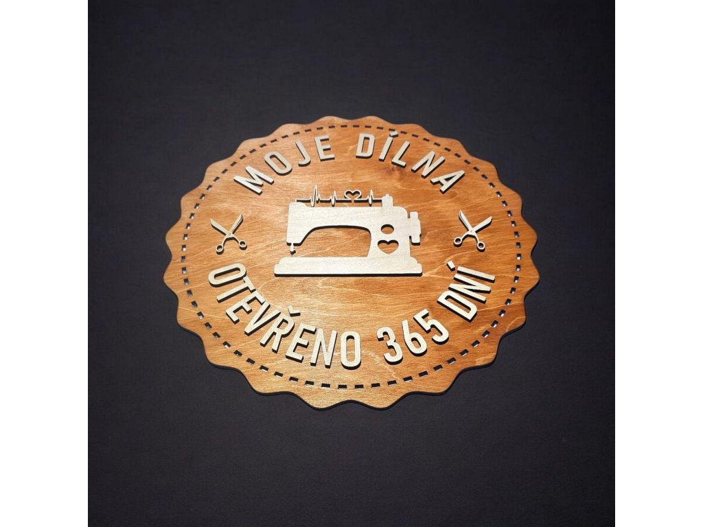 Povrch je ošetřen lihovým mořidlem v odstínu kaštan, které zvýrazňuje přirozenou kresbu dřeva a dodává cedulce teplý, rustikální vzhled. Cedulka je ideální jako dekorace do dílny, domácí garáže, kovo-dílny, šicí místnosti nebo jako dárek pro kutila či řemeslníka.