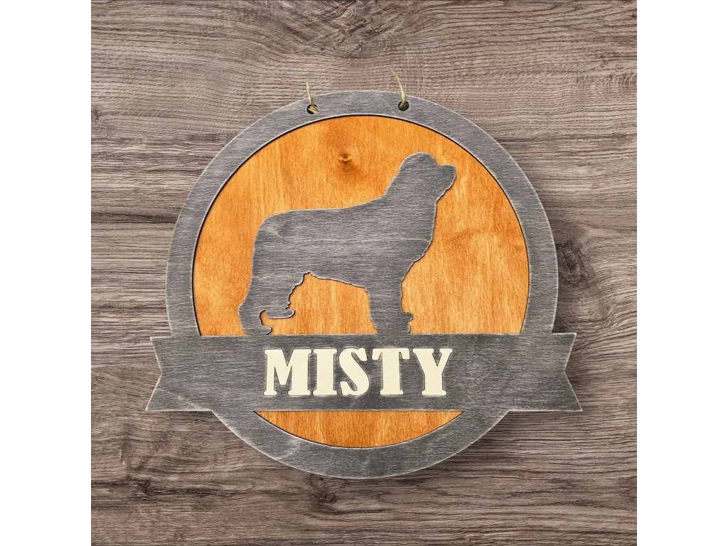 Dřevěná cedulka na dveře s motivem a jménem psa