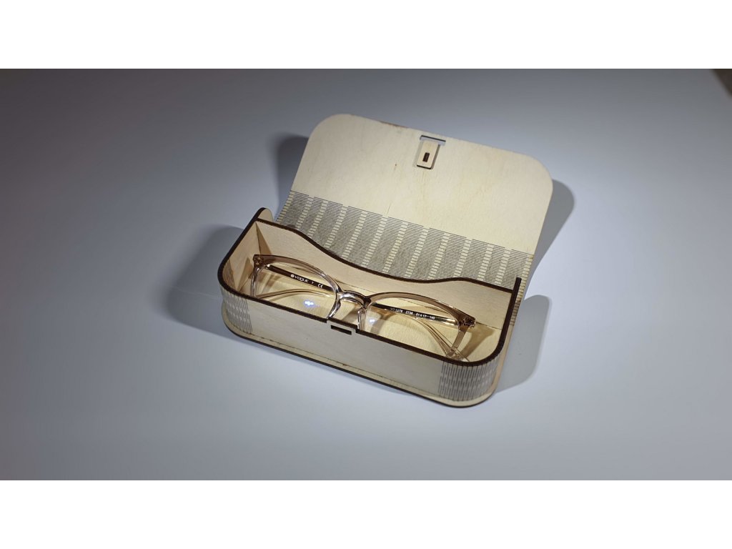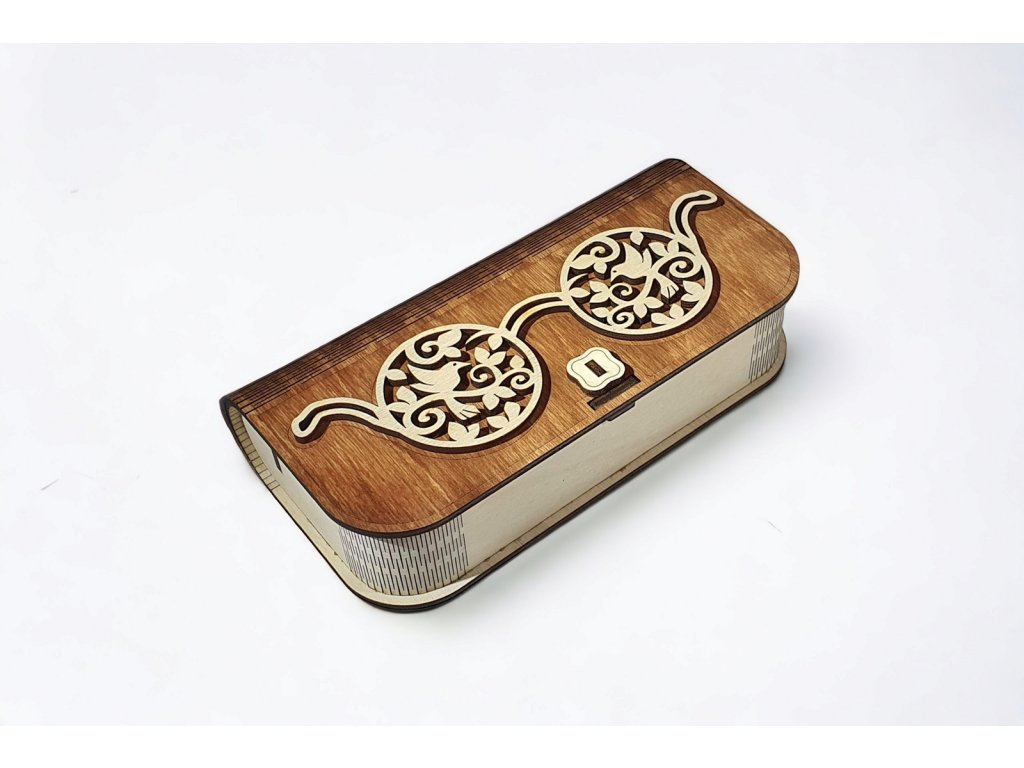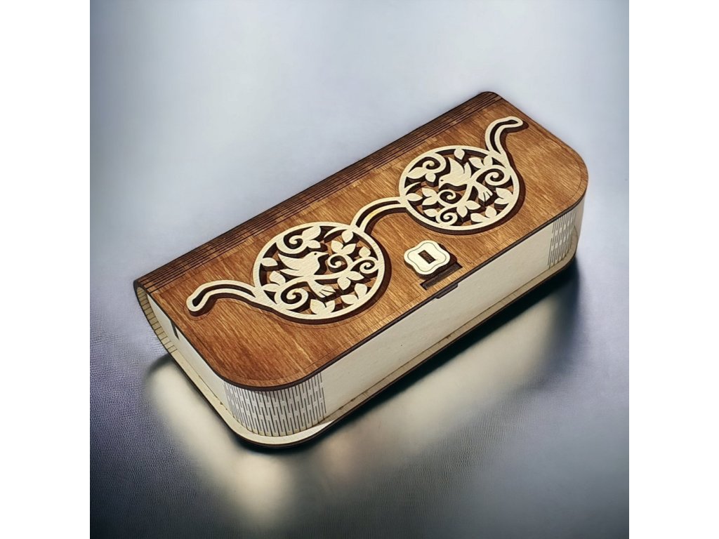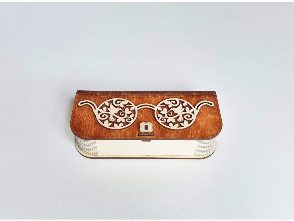 Tmavá dřevěná uzavíratelná krabička na brýle vyrobená z kvalitní březové překližky. Elegantní design, ruční výroba v Česku, ideální jako dárek pro ní i pro něj.