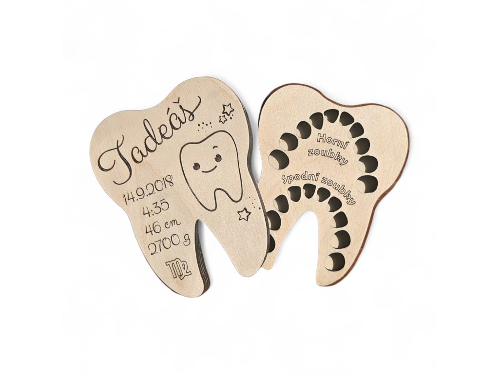 Originální dřevěná krabička na dětské mléčné zoubky. Ručně vyráběná v Česku, ideální vzpomínkový dárek.