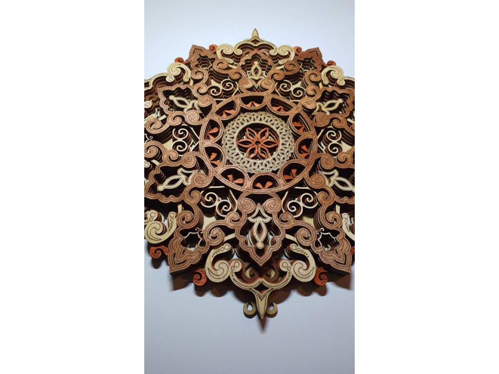 Dekorativní dřevěný obraz s motivem mandaly. Ruční výroba. Každý kus je originál s přirozenou kresbou dřeva.