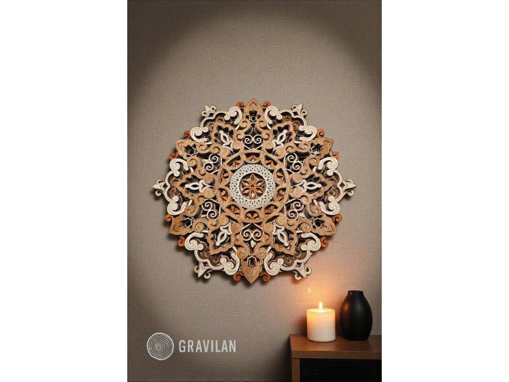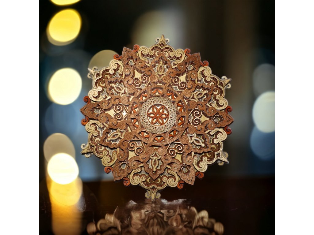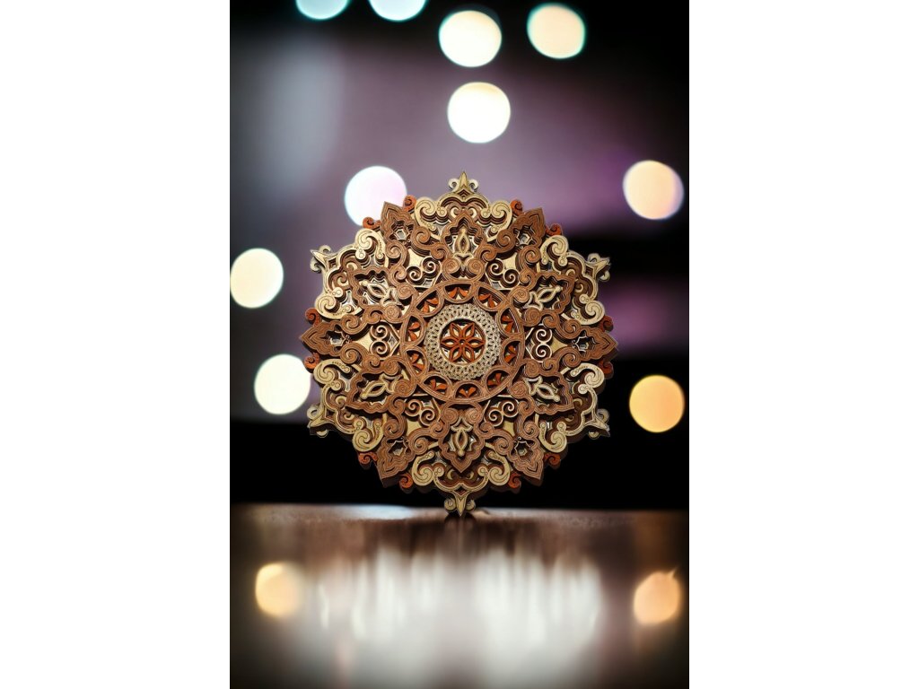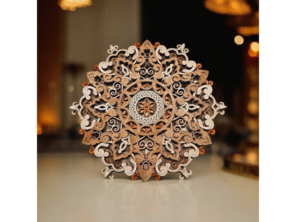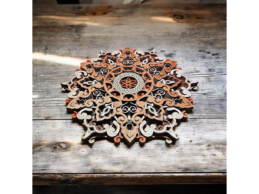 Elegantní dekorativní obraz z přírodního dřeva s motivem mandaly, který vnese do interiéru harmonii, klid a pozitivní energii. Každý kus dřevěné mandaly je ručně vyráběn s důrazem na detail, takže se může mírně lišit ve struktuře i odstínu dřeva – právě to zaručuje jeho originalitu.