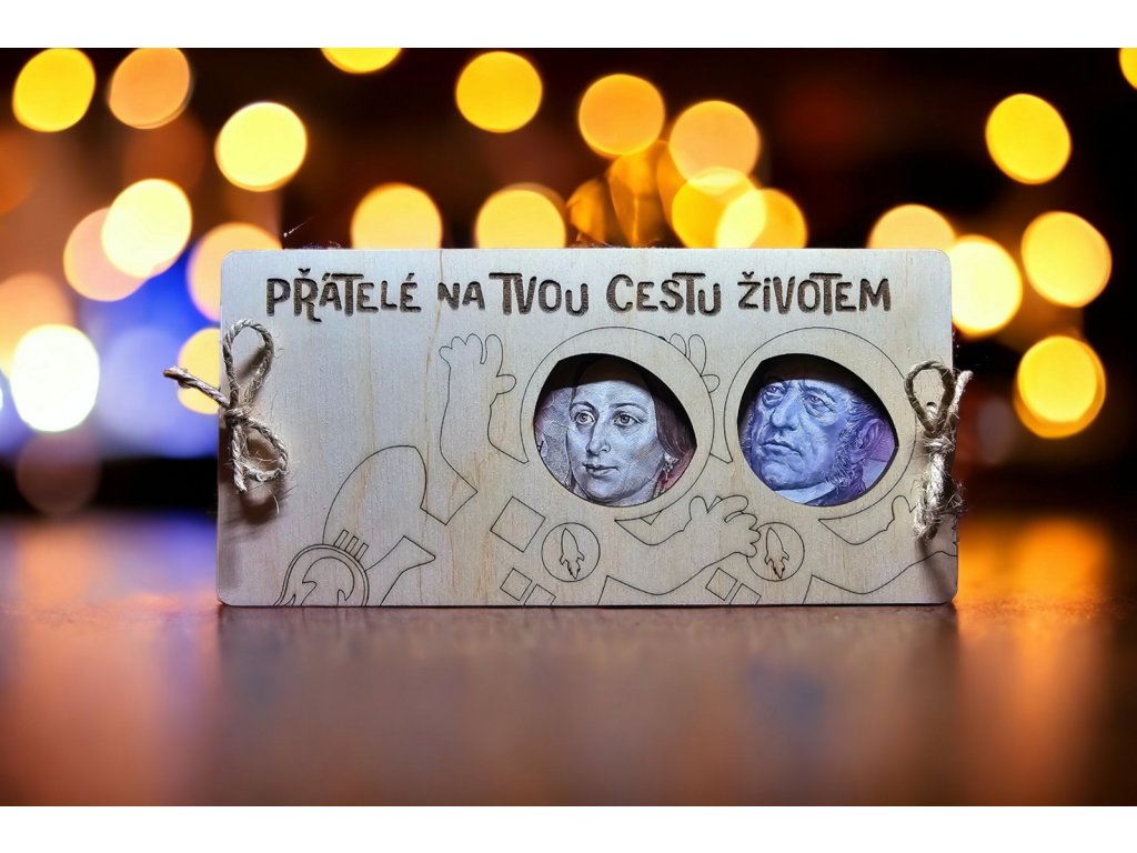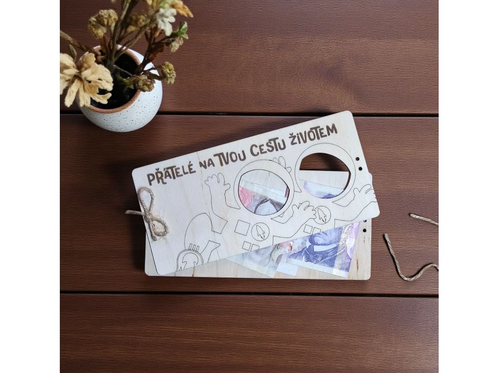 Dřevěná obálka složená ze dvou vrstev březové překližky s možností vložení bankovek.