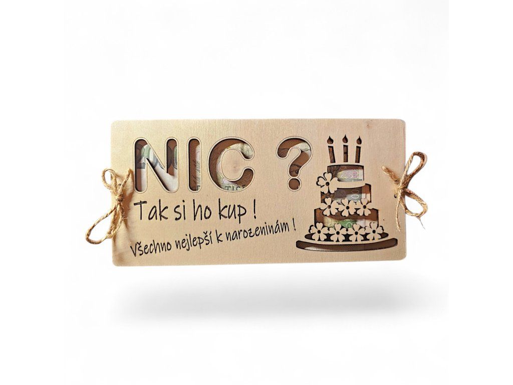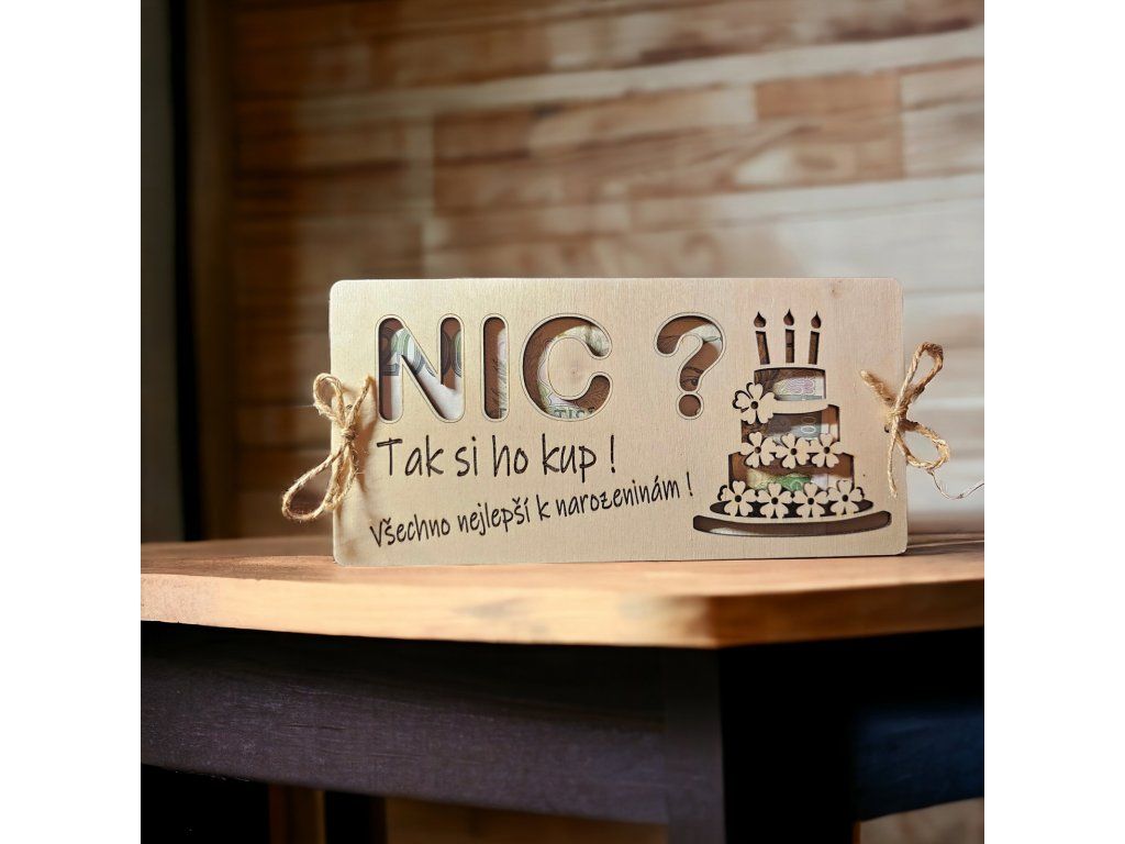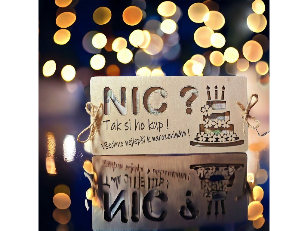 Hledáte originální způsob, jak darovat peníze k narozeninám? Tato dřevěná obálka na peníze s nápisem „NIC“ je přesně ten typ dárku, který rozesměje a zároveň potěší.