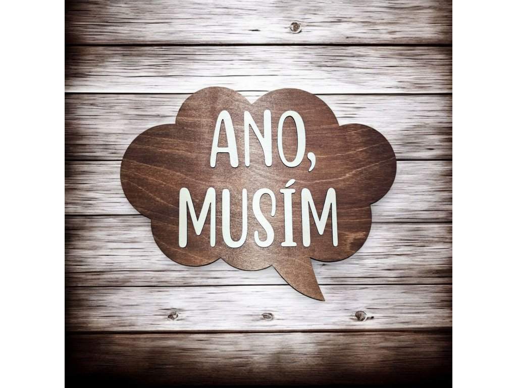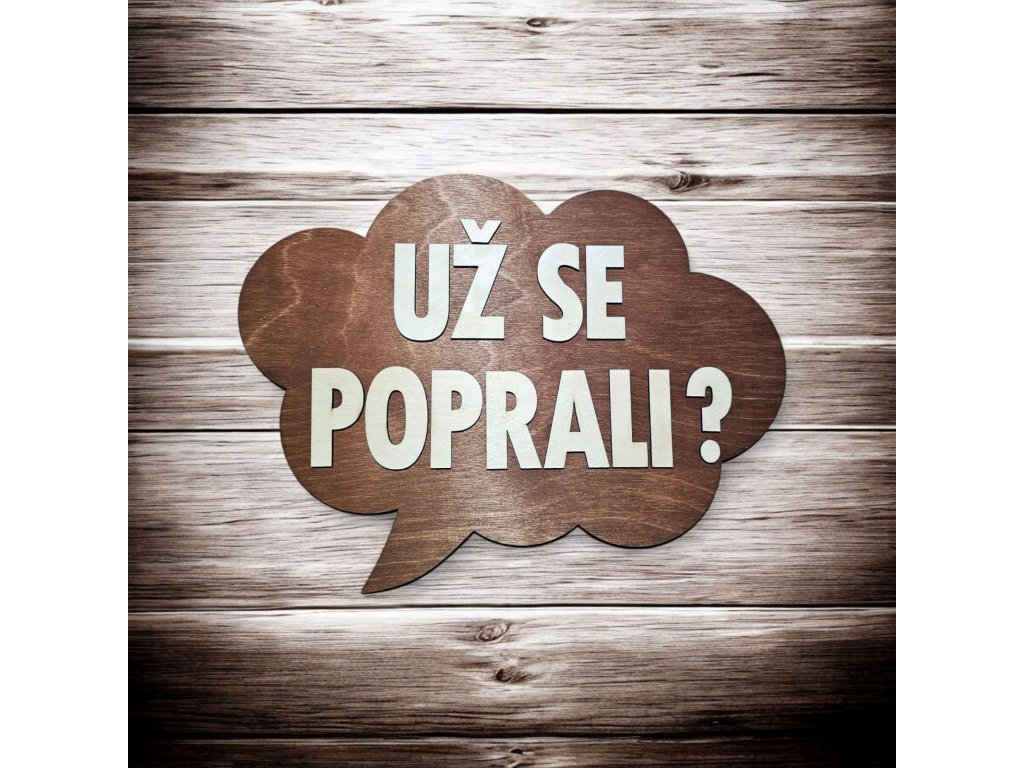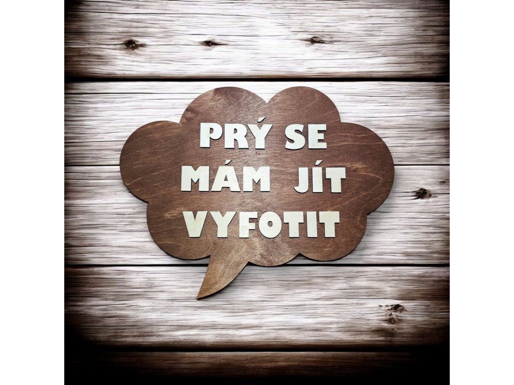 Oboustranná dřevěná cedulka do fotokoutku ve tvaru obláčku s možností vlastního nápisu. Zábavný doplněk pro svatby, oslavy i párty.