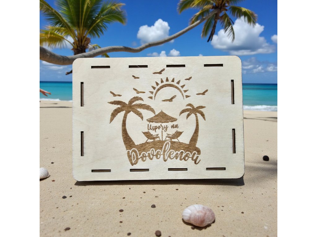 Originální dřevěná obálka na peníze – elegantní způsob, jak zabalit peníze pro cestovatele. Ručně vyráběné z překližky s gravírováním textu či motivu.