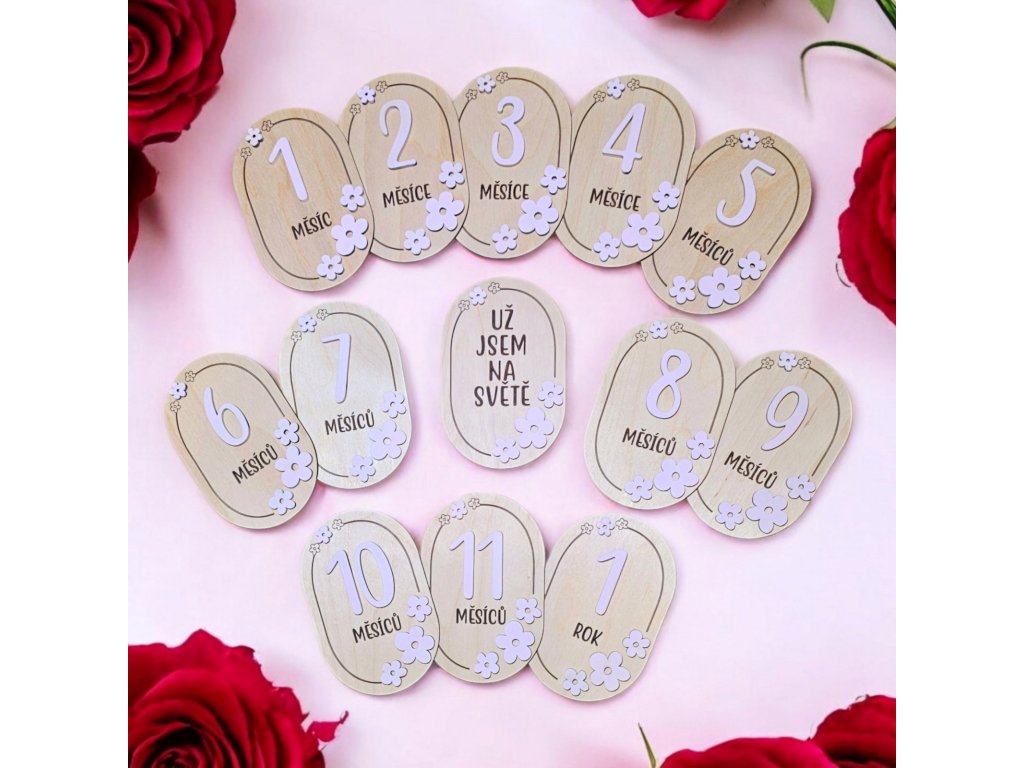 Naše dřevěné milníkové kartičky vám pomůžou zaznamenat každý důležitý měsíc a uchovat vzpomínky, které nikdy nevyblednou.