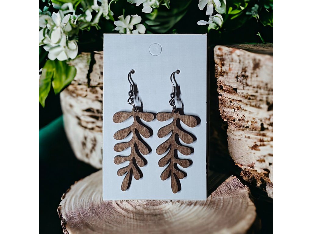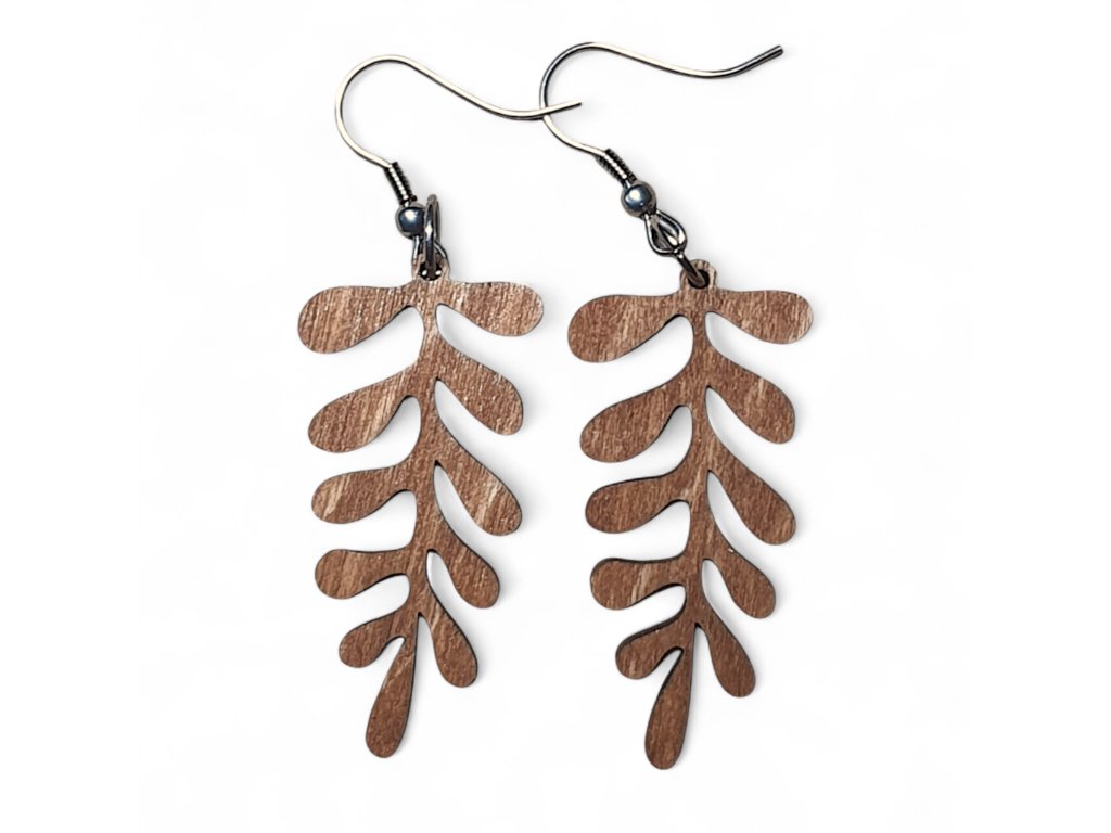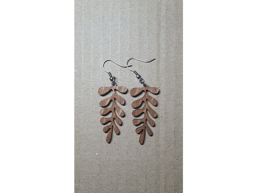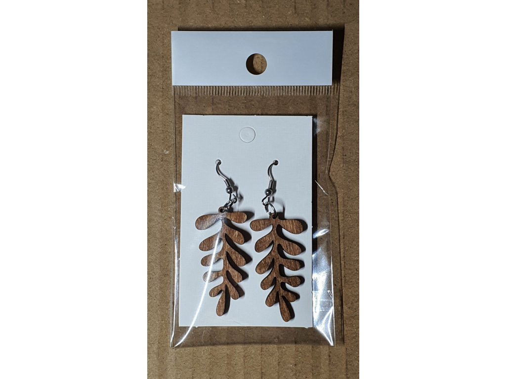 Jemné dřevěné náušnice s motivem kapradí inspirované přírodou. Lehký design, ruční výroba a pohodlné nošení.