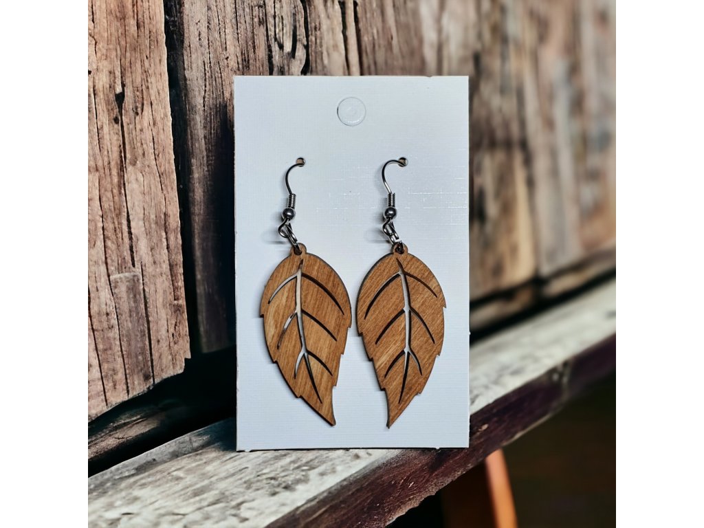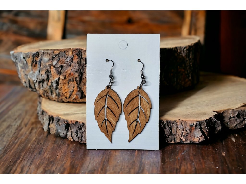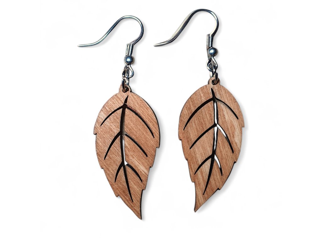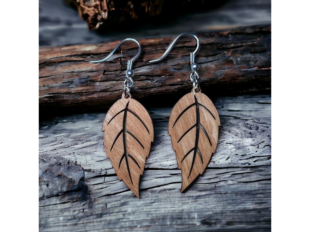 Klasické dřevěné náušnice ve tvaru listu. Přírodní design, nízká hmotnost a pohodlné nošení každý den.