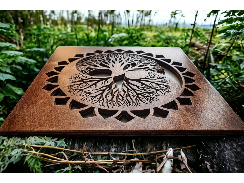 Dřevěná dekorace - strom života YIN YANG vyrobená z březové překližky.