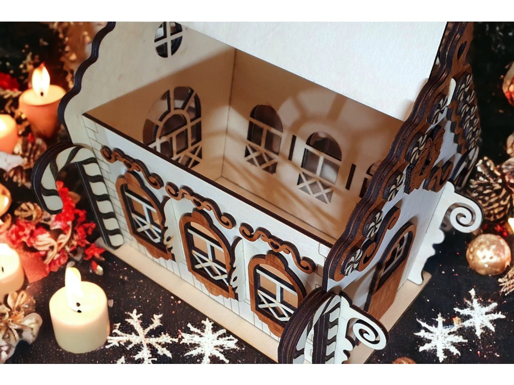Vyklápěcí střecha na obou stranách. Po vložení LED svíčky lze použít jako svícen.