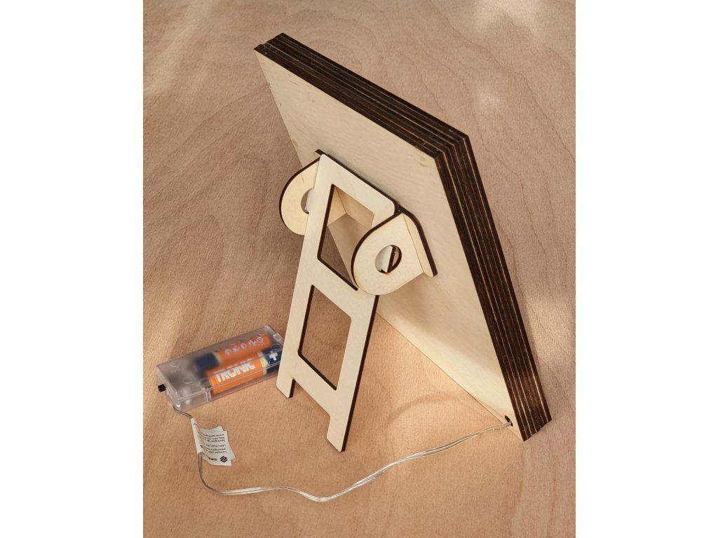 Osvětlení: LED diody (teple bílé) zabudované do vnitřní části obrazu, řízené vypínačem