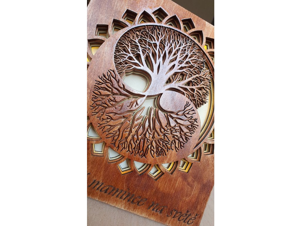 Vyrobte si domov útulnějším a plným symboliky s tímto dřevěným obrázkem „Strom života“ s LED osvětlením. Tento dekorativní kousek kombinuje krásu dřeva, jemné světlo a hloubku významu — ideální jako dekorace, dárek nebo atmosférické doplnění vašeho interiéru.