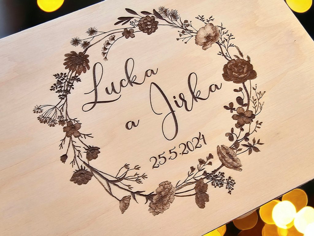 - gravírování jmen, motiv ze svatebního oznámení, fotografie apod.