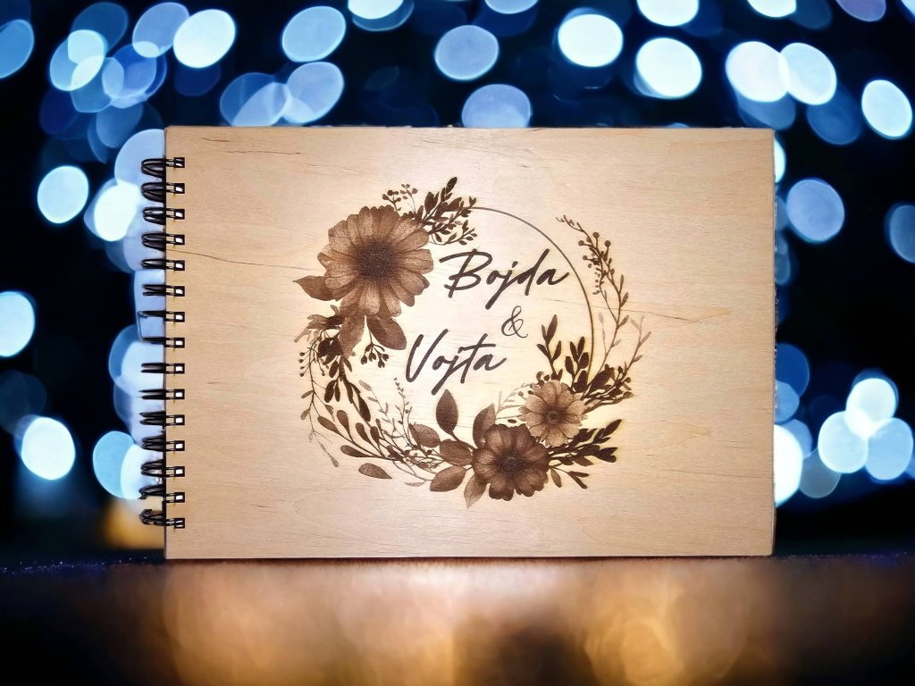 Dřevěné fotoalbum A4 s laserovým gravírováním je originální a stylový doplněk pro uchovávání fotografií nebo zápisků. Přední i zadní desky jsou vyrobeny z kvalitní březové překližky, která je pevná, odolná a nádherně vynikne v kombinaci s přírodním povrchem.