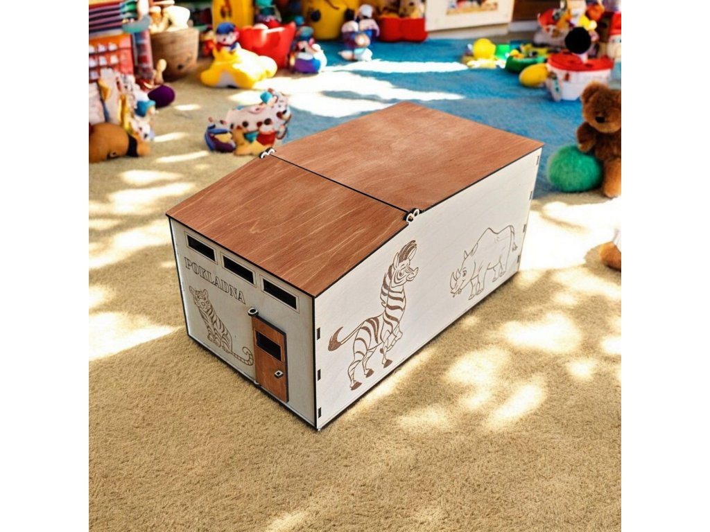 Tato garáž je ideální kombinací funkčnosti – úložného prostoru pro hračky – a estetického designu, který doplňuje interiér i hru zároveň.