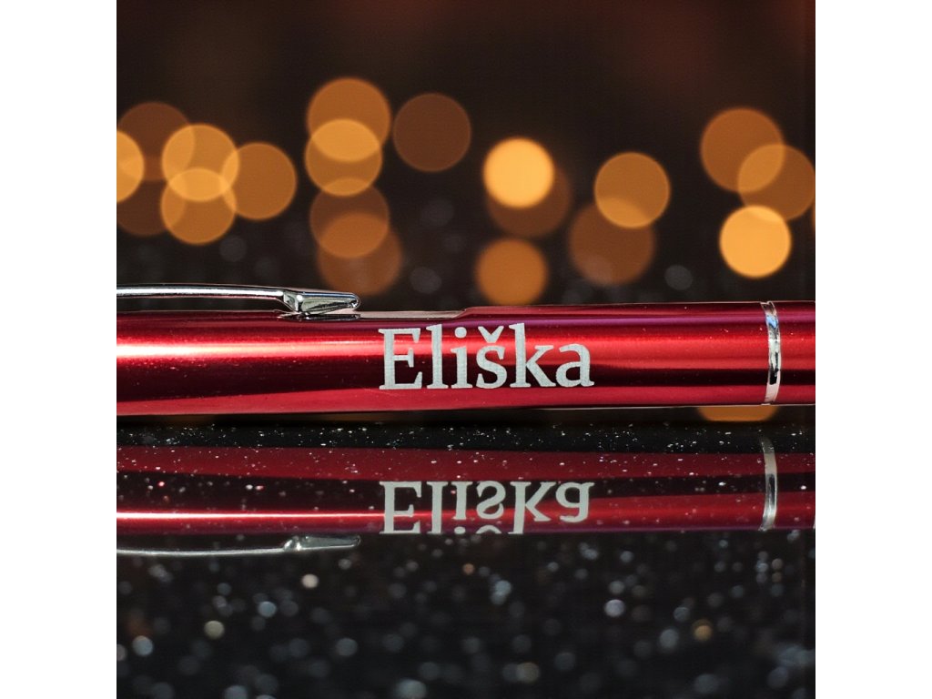 Elegantní kovová propiska s laserovým gravírováním jména. Praktický a osobní dárek pro každodenní použití doma i v práci.