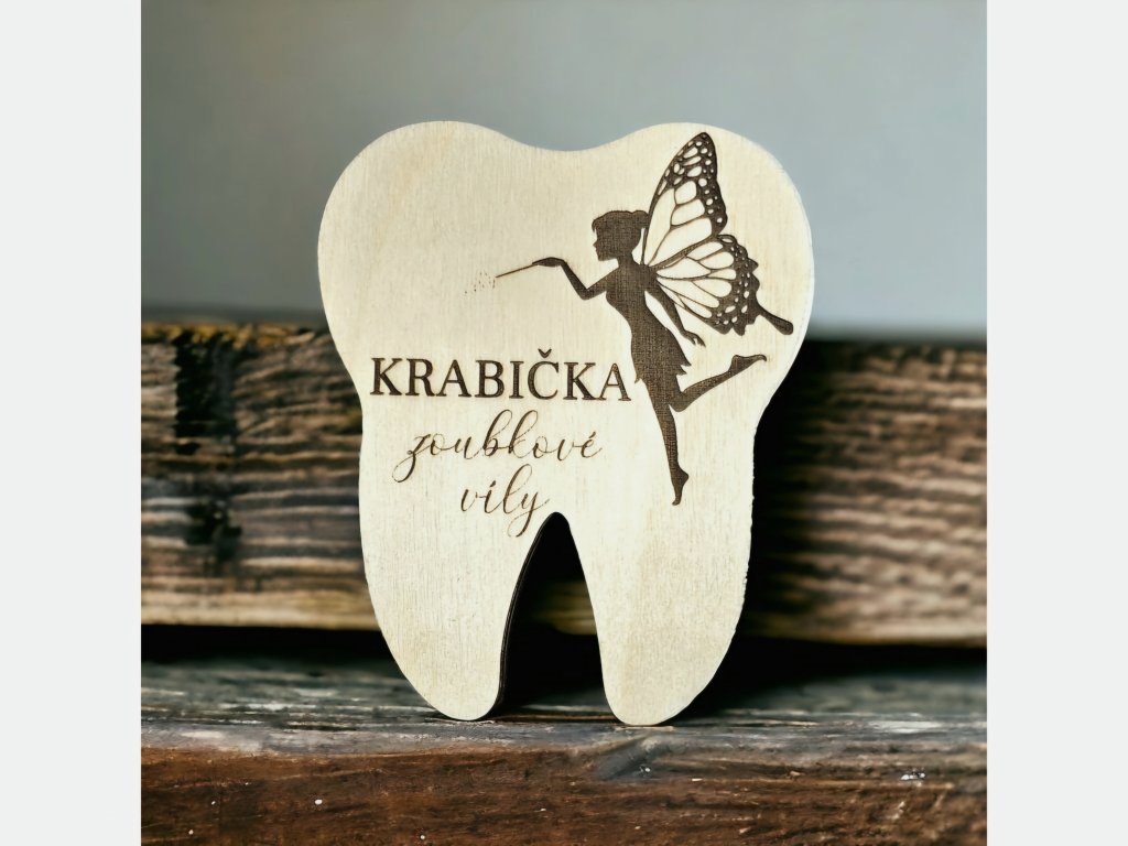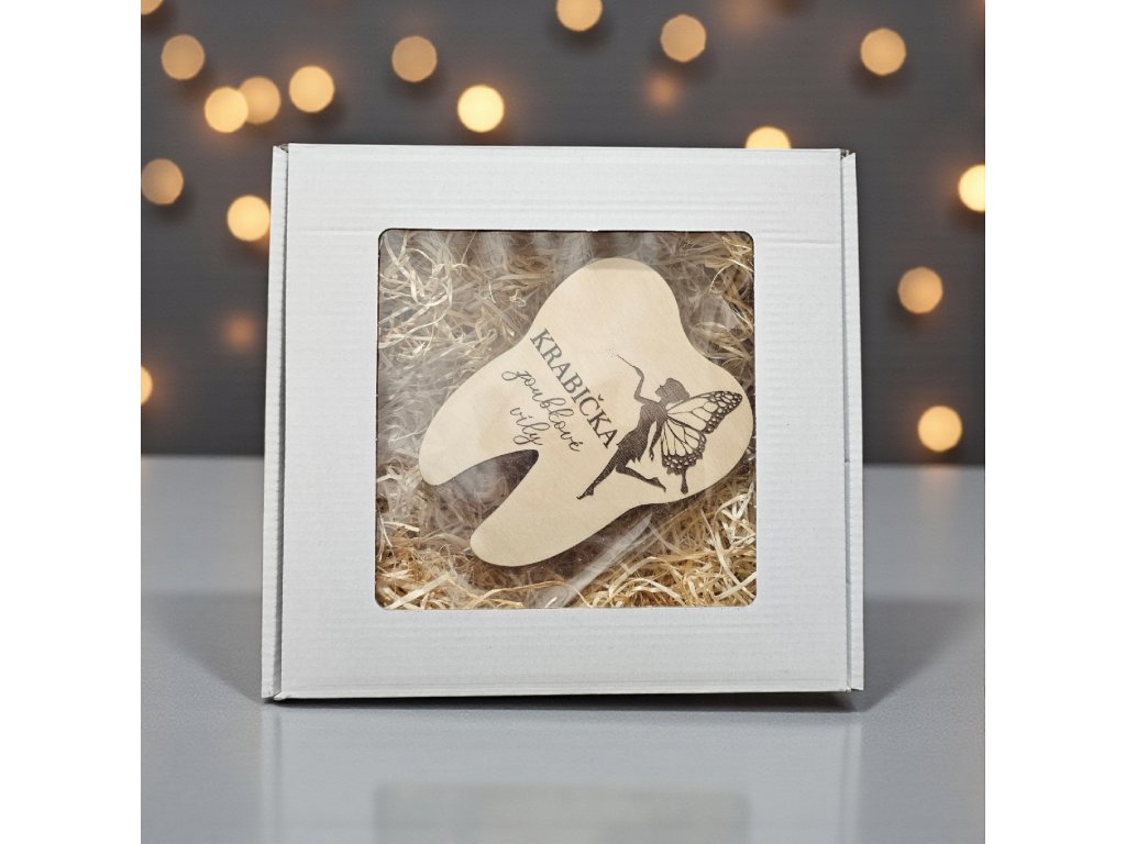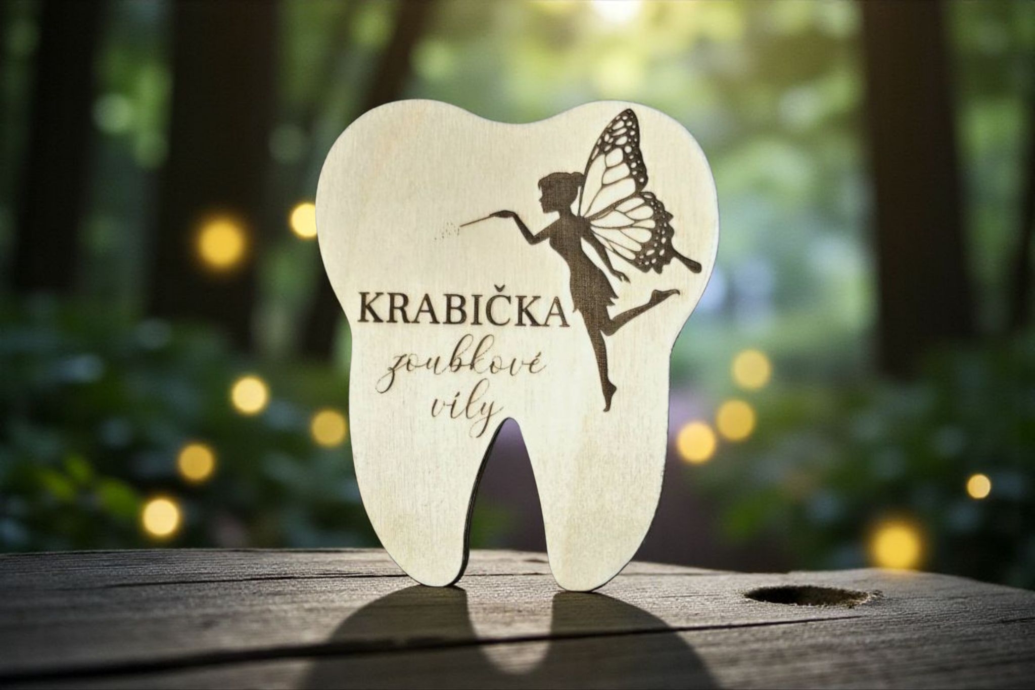 Dřevěná krabička na první dětské zoubky k uschování pro zoubkovou vílu.