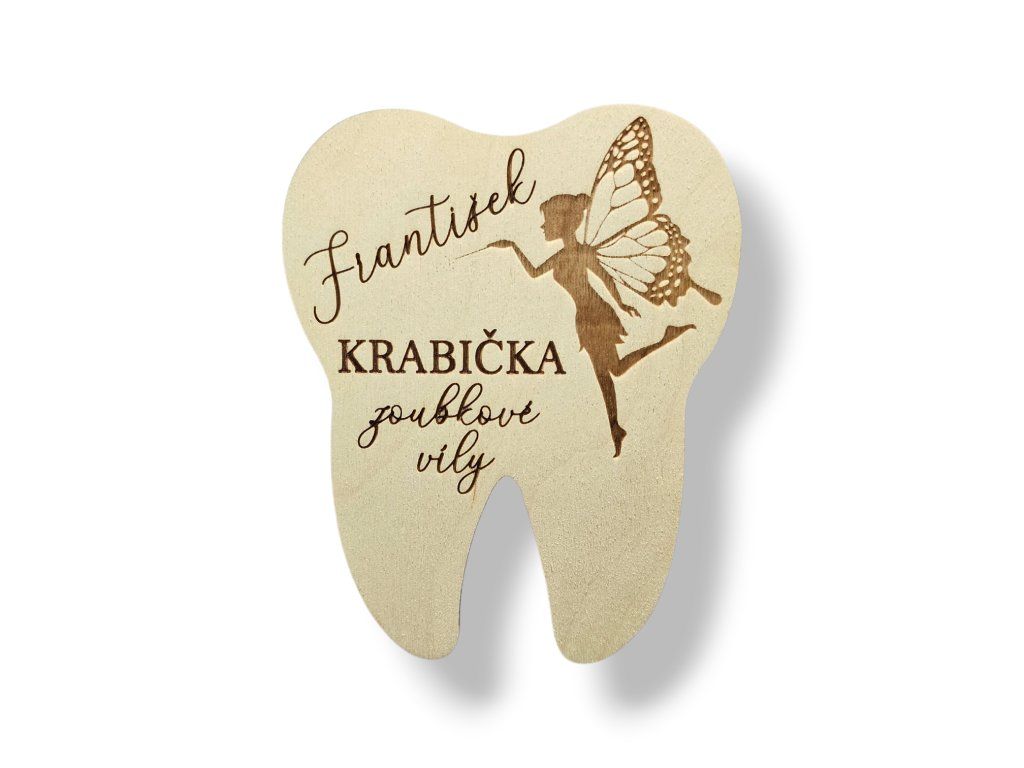 Uchovejte kouzlo prvních vypadnutých zoubků v bezpečí. Tato personalizovaná dřevěná krabička s motivem motýlí víly je navržena jako trvalá schránka na dětské vzpomínky. Na víčko vám vygravírujeme jméno dítěte, díky čemuž se z krabičky stává jedinečný osobní dárek, který provází dětství od prvního vypadlého zoubku až do dospělosti.