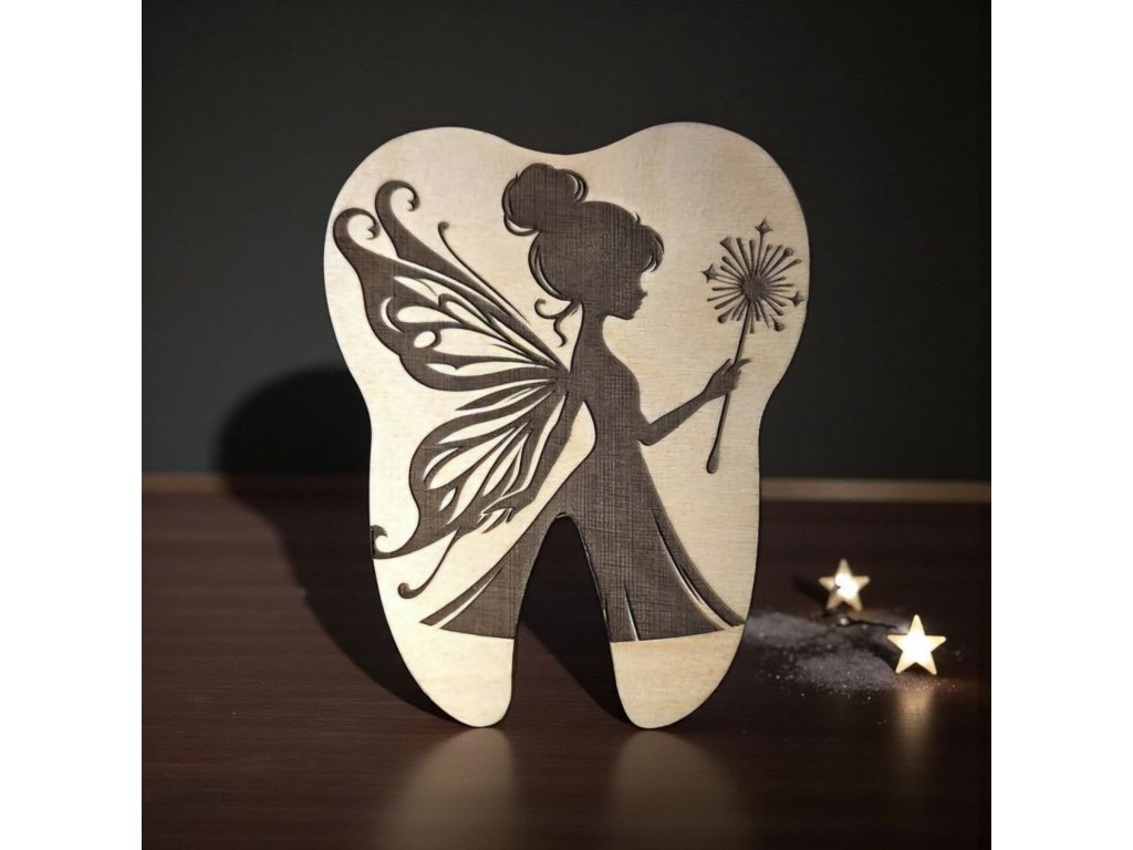 Tato dřevěná krabička na mléčné zoubky „Víla 2“ značky Gravilan je navržena jako krásná památka na první mléčný zoubek vašich dětí. Vyrobena z kvalitní březové překližky, jemně opracovaná, s motivem víly a možností gravírování jména dítěte nebo data. Ideální dárek pro děti i rodiče. Každý kus vzniká ručně v české dílně Gravilan s důrazem na detail, ekologii a estetiku přírodního dřeva. Vytvořte vzpomínku, která vydrží, a zachovejte první mléčný zoubek s osobním dotekem.