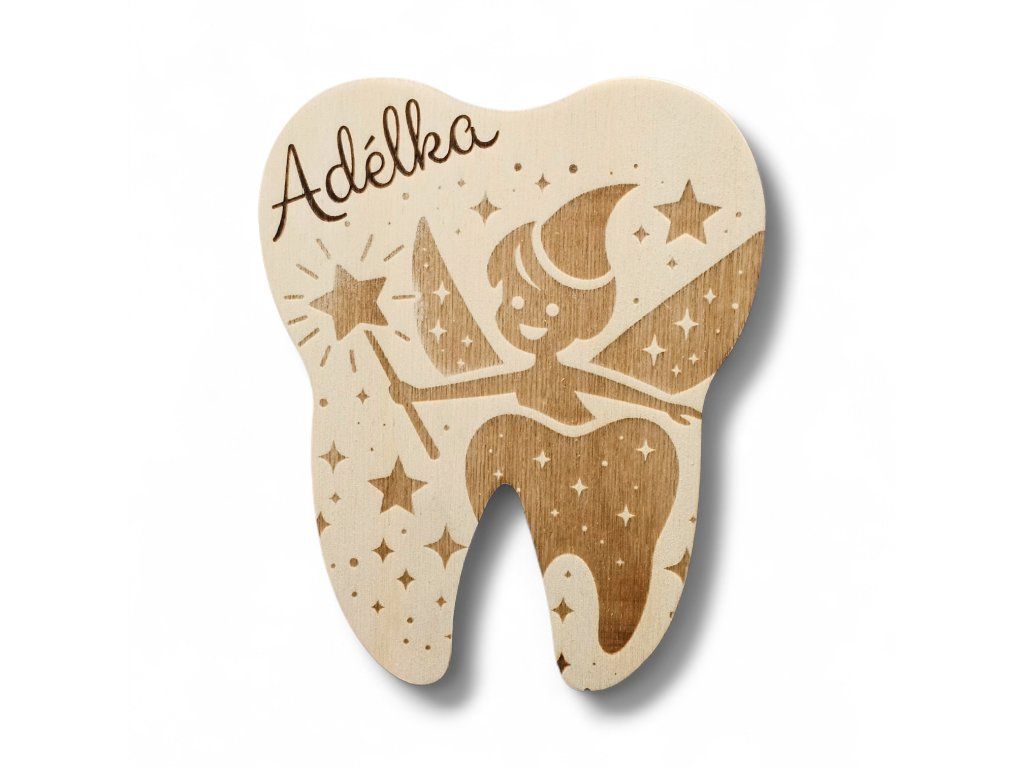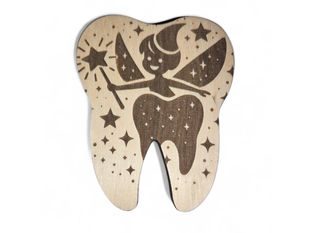 Jaký je nejlepší dárek za první vypadlý zoubek? Tradičně nechává zoubková víla dětem malou minci nebo drobný dárek. Dřevěná krabička s motivem víly je ideálním doplňkem, který dětem pomáhá zbavit se strachu z vypadnutí zoubku a tvoří z něj rituál.