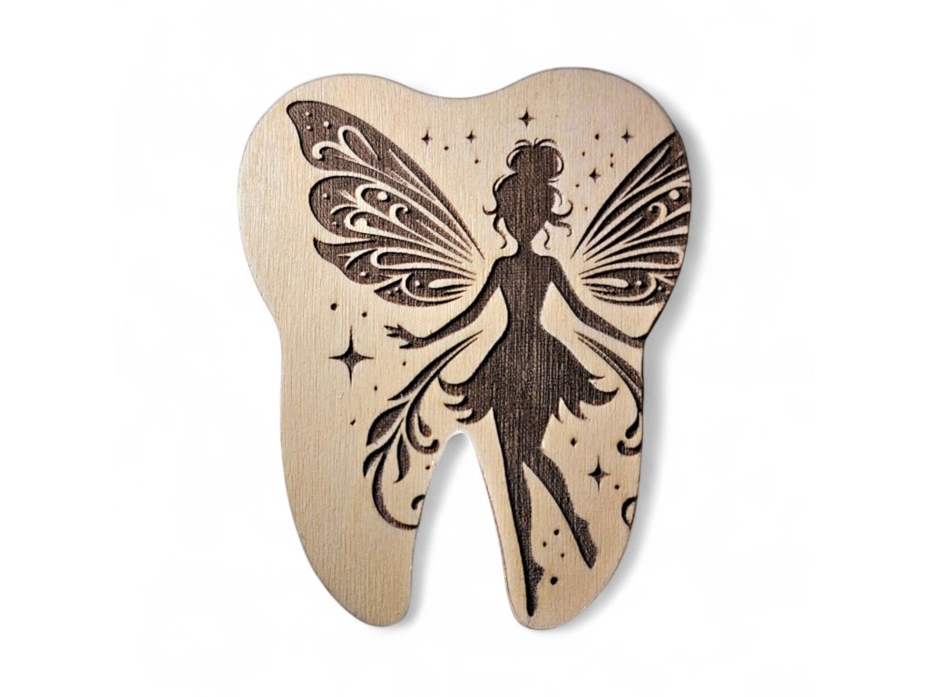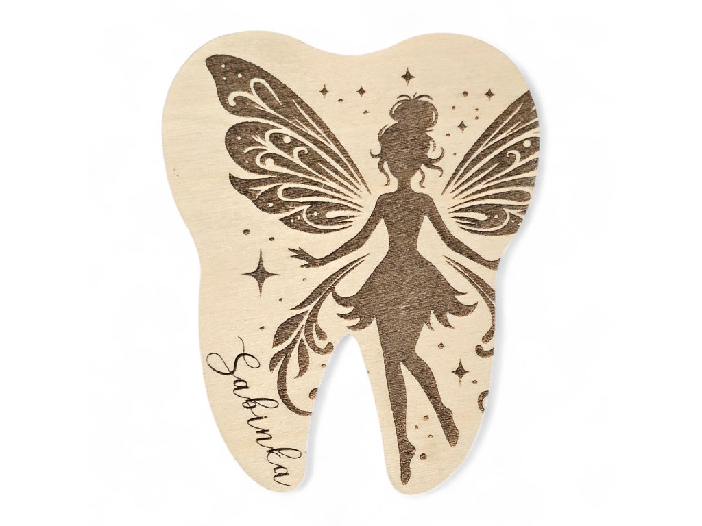 Originální dřevěná krabička na mléčné zoubky s motivem víly. Zakázková výroba v Česku, ideální vzpomínkový dárek.