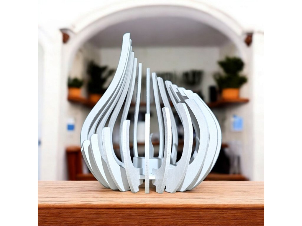 LED svícen PLAMEN bílý je moderní světelná dekorace, která díky lesklé bílé povrchové úpravě působí čistě, elegantně a luxusně. Tvar plamene tvořený jednotlivými lamelami vytváří po rozsvícení krásnou hru světla i stínů.