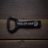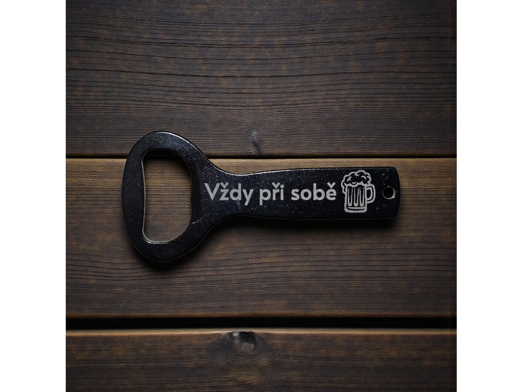 Minimalistický černý otvírák na klíče s možností gravírování vlastního textu. Praktický doplněk, který využijete doma i s přáteli – vždy připravený otevřít láhev.