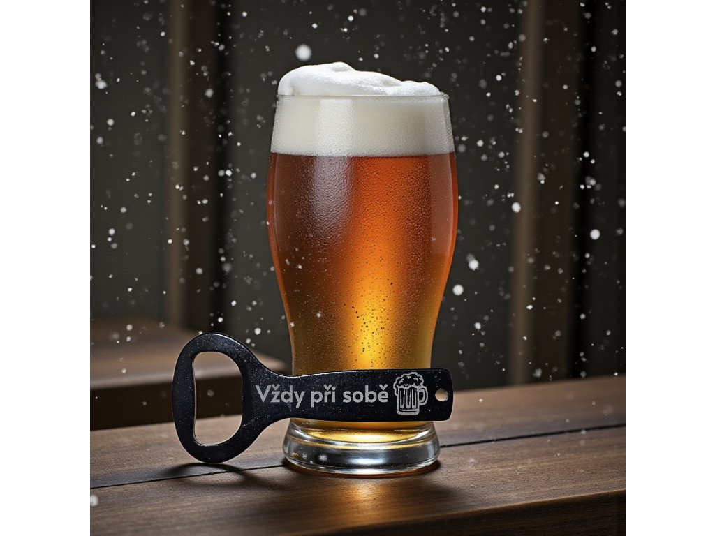 Tento černý otvírák na klíče spojuje jednoduchý design, praktičnost a možnost osobního gravírování. Díky kompaktním rozměrům jej můžete mít neustále u sebe – na klíčích, batohu nebo tašce – a využít ho kdykoliv, když je potřeba otevřít láhev.