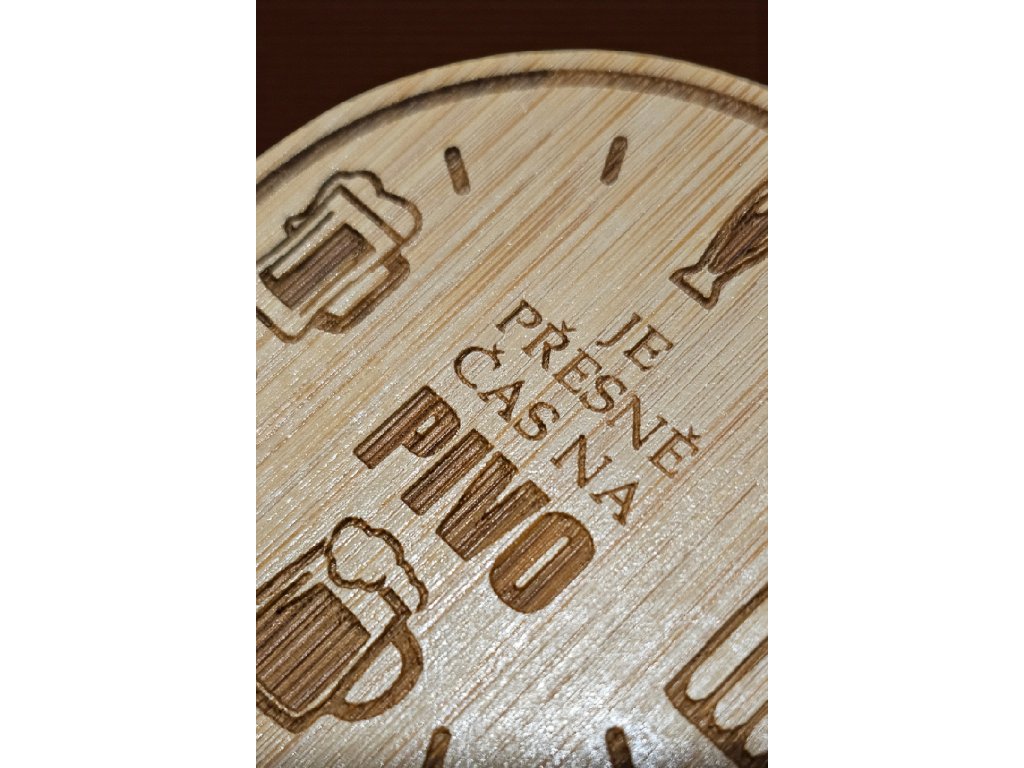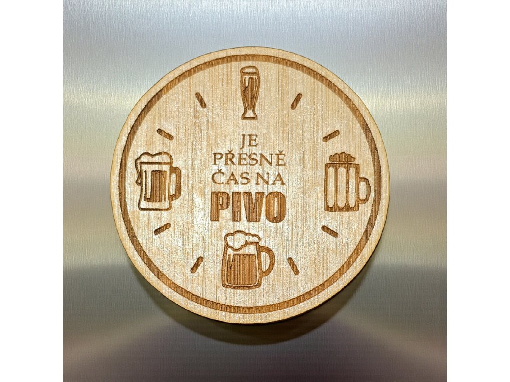 Praktický dřevěný otvírák s magnetem na lednici a vtipným motivem „Je přesně čas na pivo“. Skvělý dárek pro muže, pivaře nebo jako doplněk domácího baru.