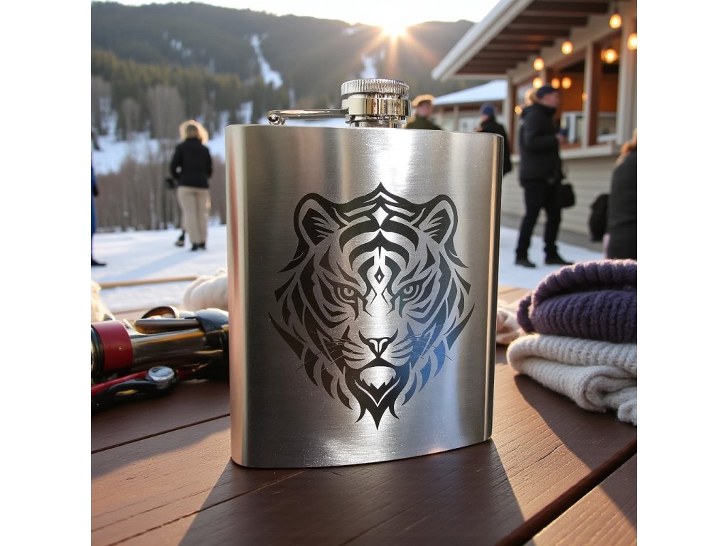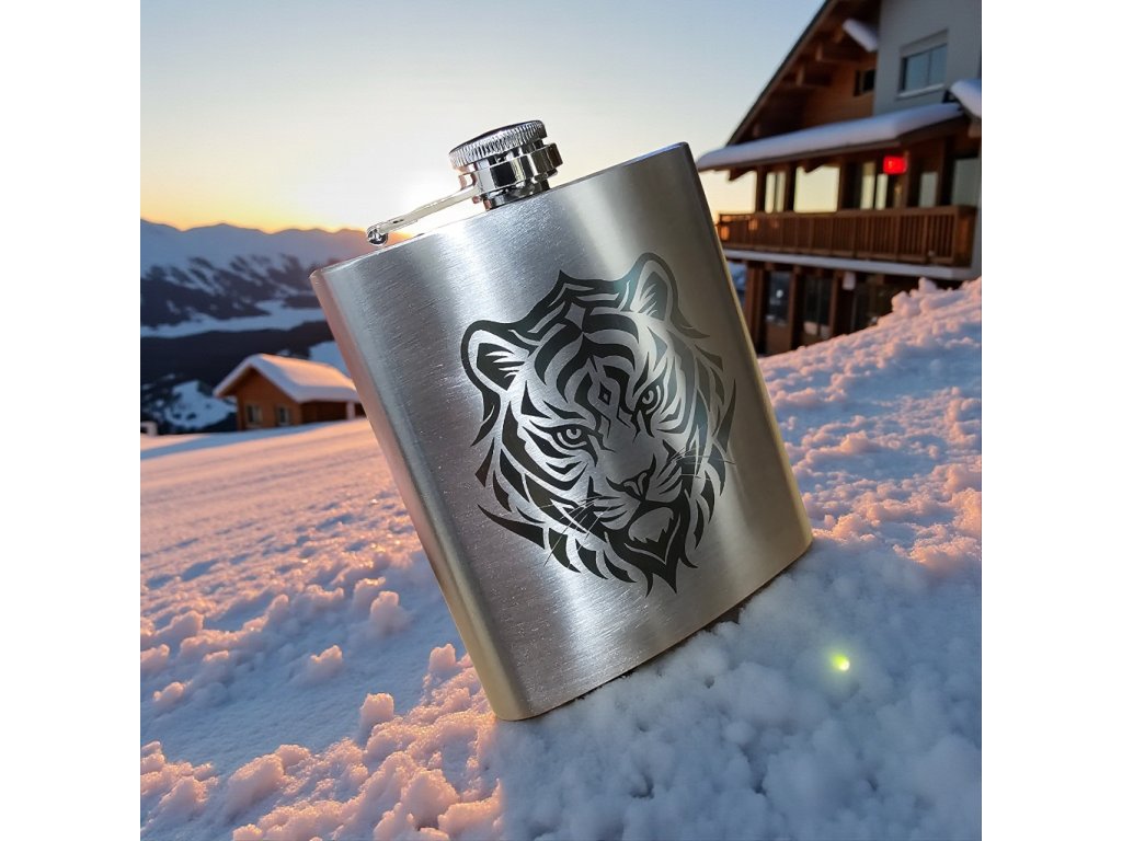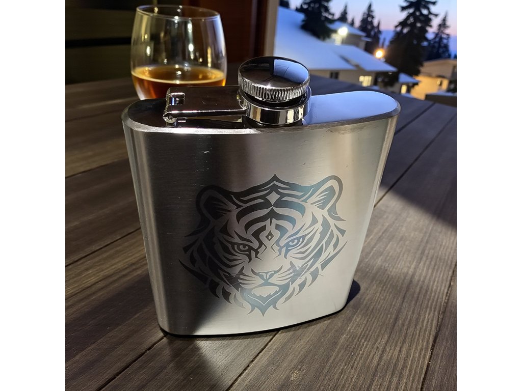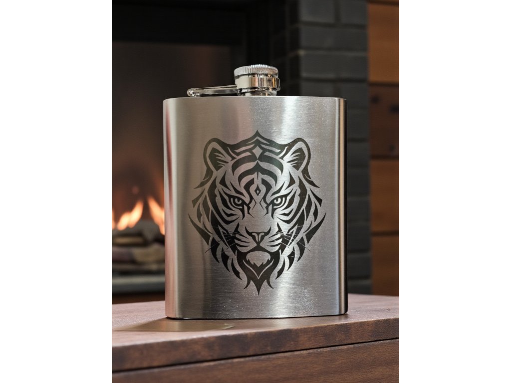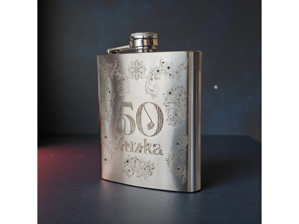 Elegantní nerezová placatka o objemu 207 ml s laserovým gravírováním. Stylové placatky pro muže – hotové motivy nebo vlastní návrh na přání, kvalitně a levně.