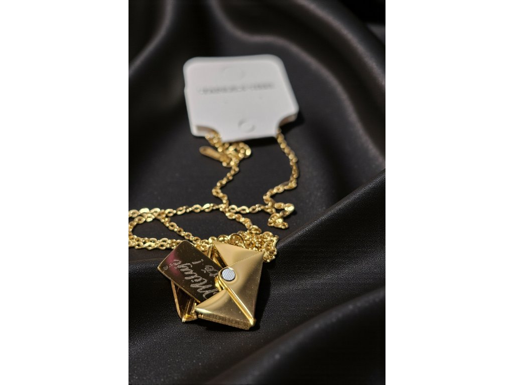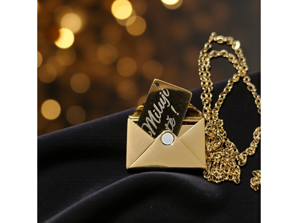 Přívěsek s řetízkem – obálka s gravírovaným vzkazem, zlatá barva