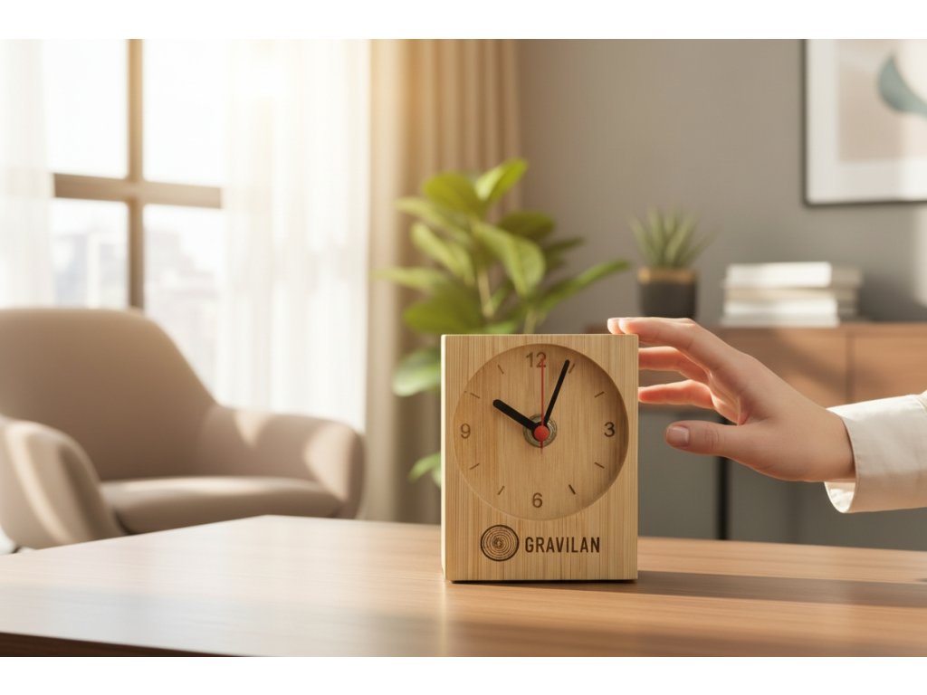Minimalistické bambusové stolní hodiny doplněné o precizní laserové gravírování na míru.