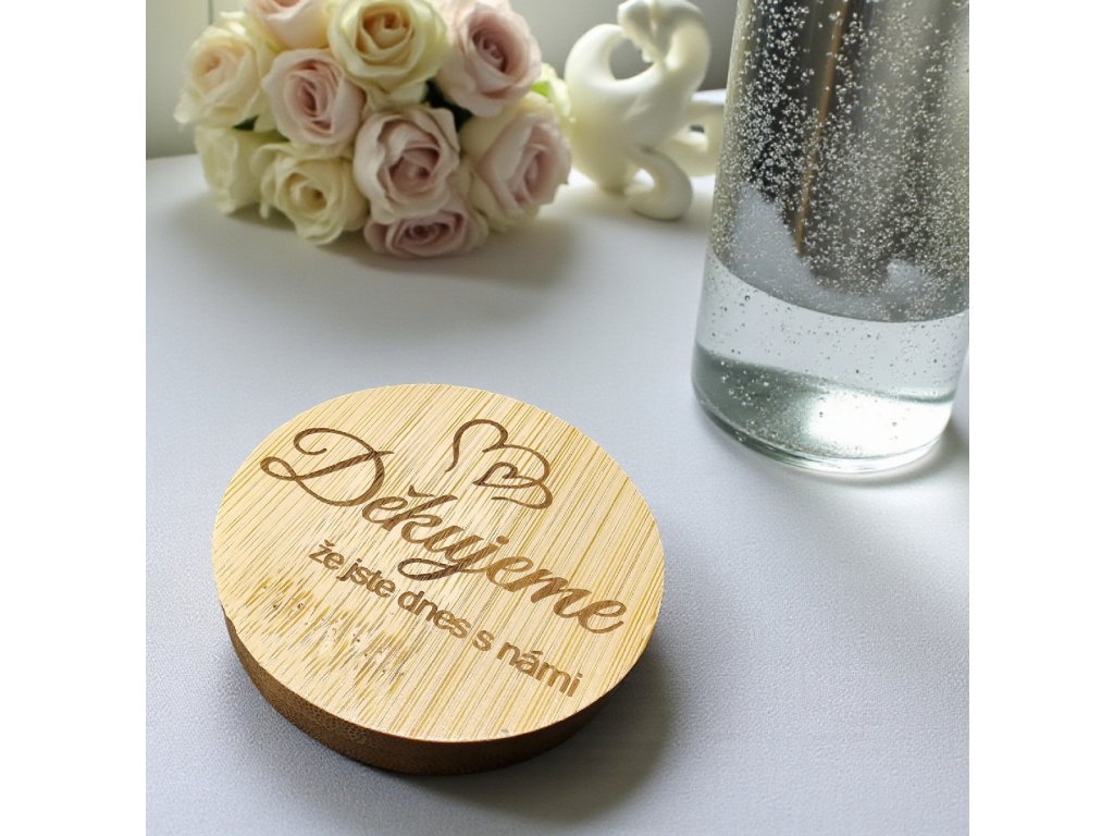 Otvírák je možné plně přizpůsobit na přání. Můžete zvolit vlastní text, jména novomanželů, datum a místo svatby, krátké poděkování hostům nebo jednoduchý symbol či motiv. Díky tomu vznikne originální svatební doplněk, který bude přesně odpovídat vaší představě i atmosféře svatby.