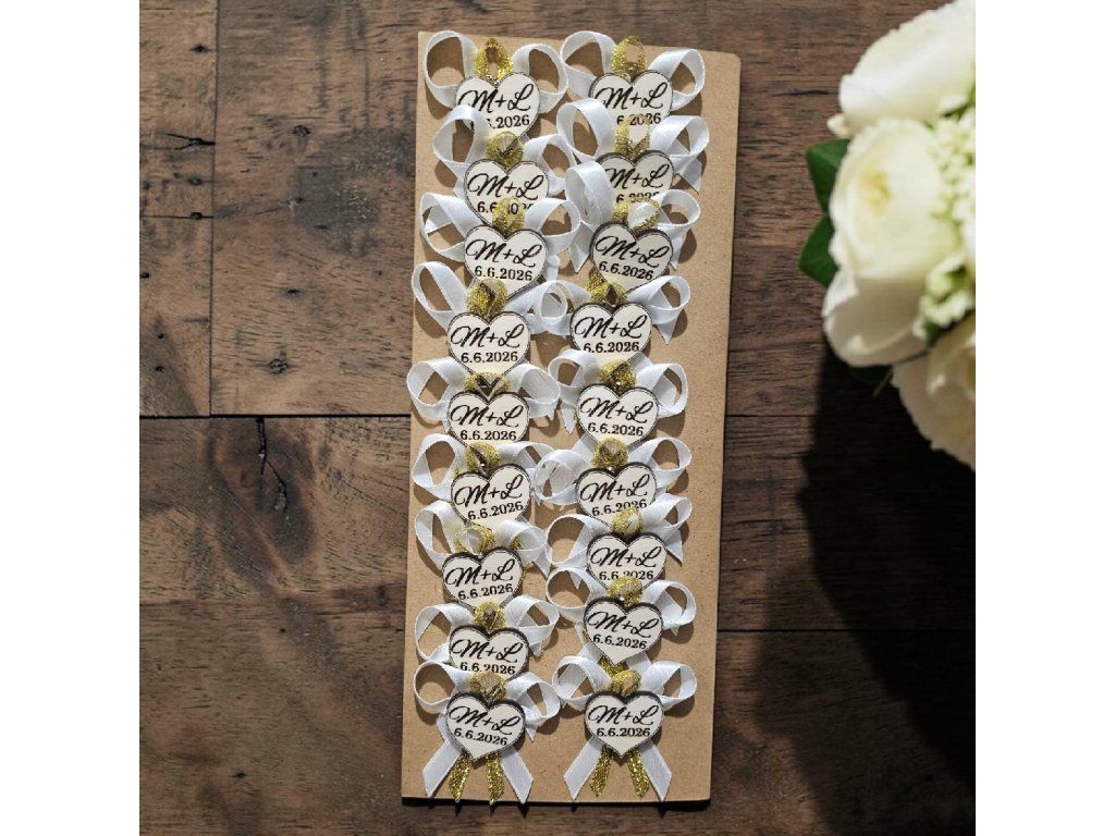 Široké možnosti využití: Kromě zdobení svatebčanů se tyto mašličky s gravírováním skvěle hodí k dekorování dárkových krabiček s výslužkou, k označení míst u svatebního stolu nebo jako stylový prvek při aranžování slavnostních dekorací.