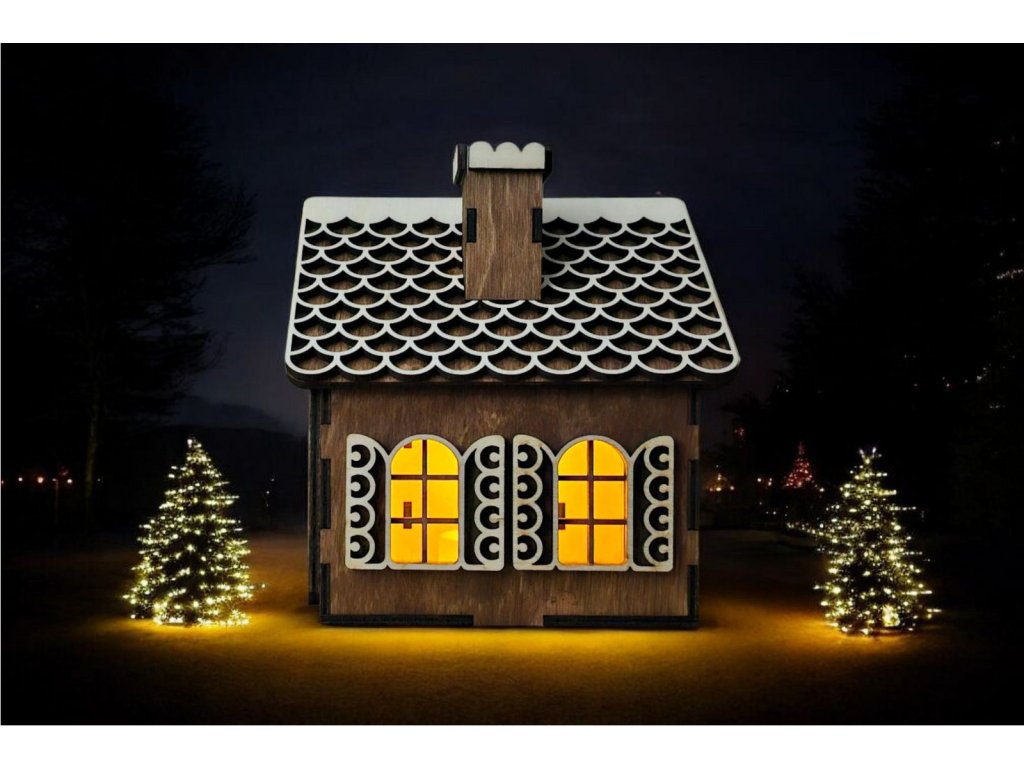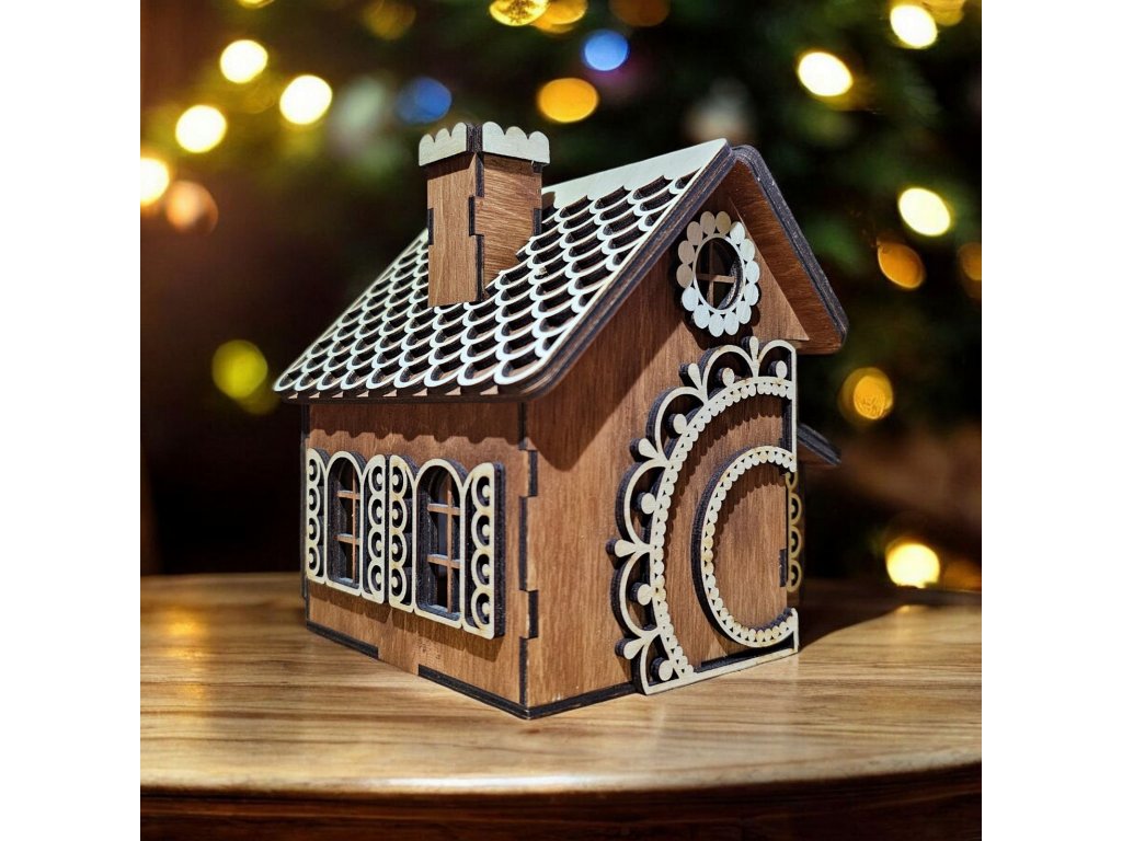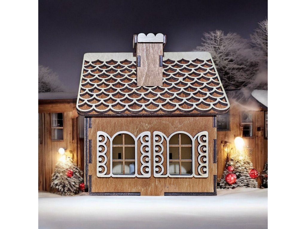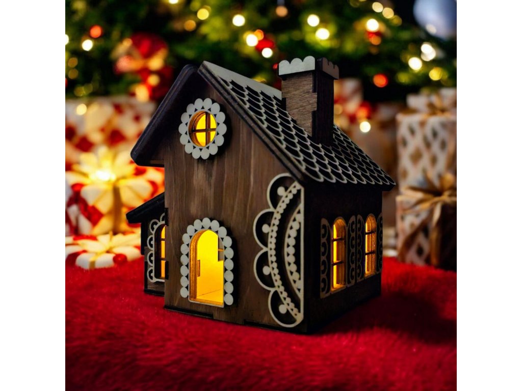 Vánoční svítící domeček – dřevěná LED dekorace | Gravilan
