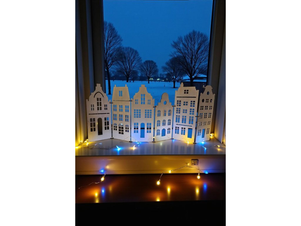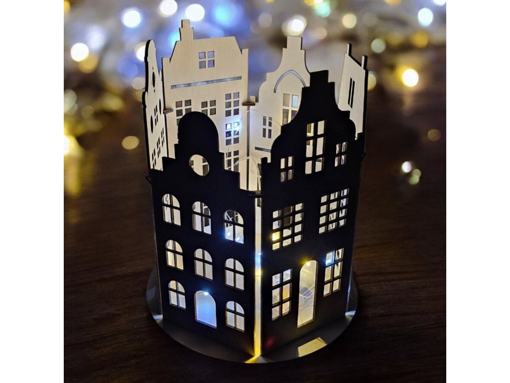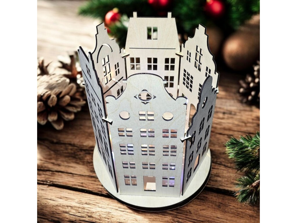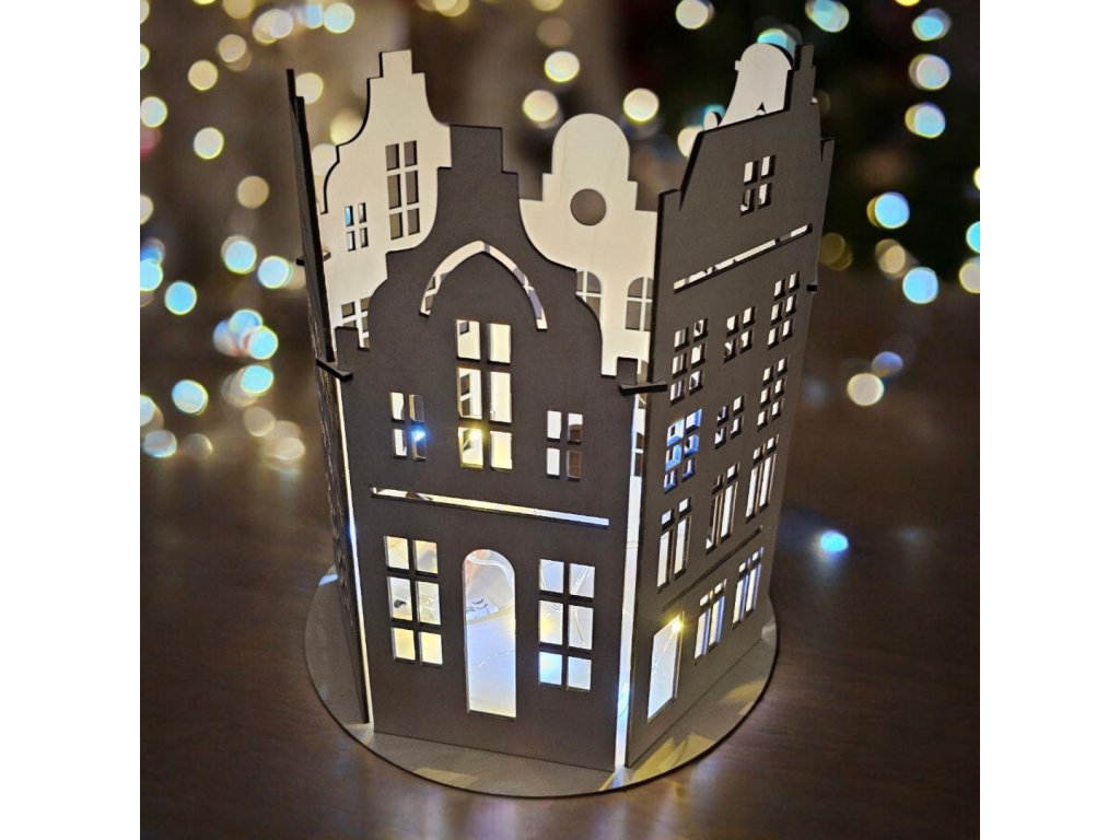 Vánoční dřevěná vesnička 2v1 – svítící dekorace do interiéru. Vánoční lucerna i dekorace na poličku.